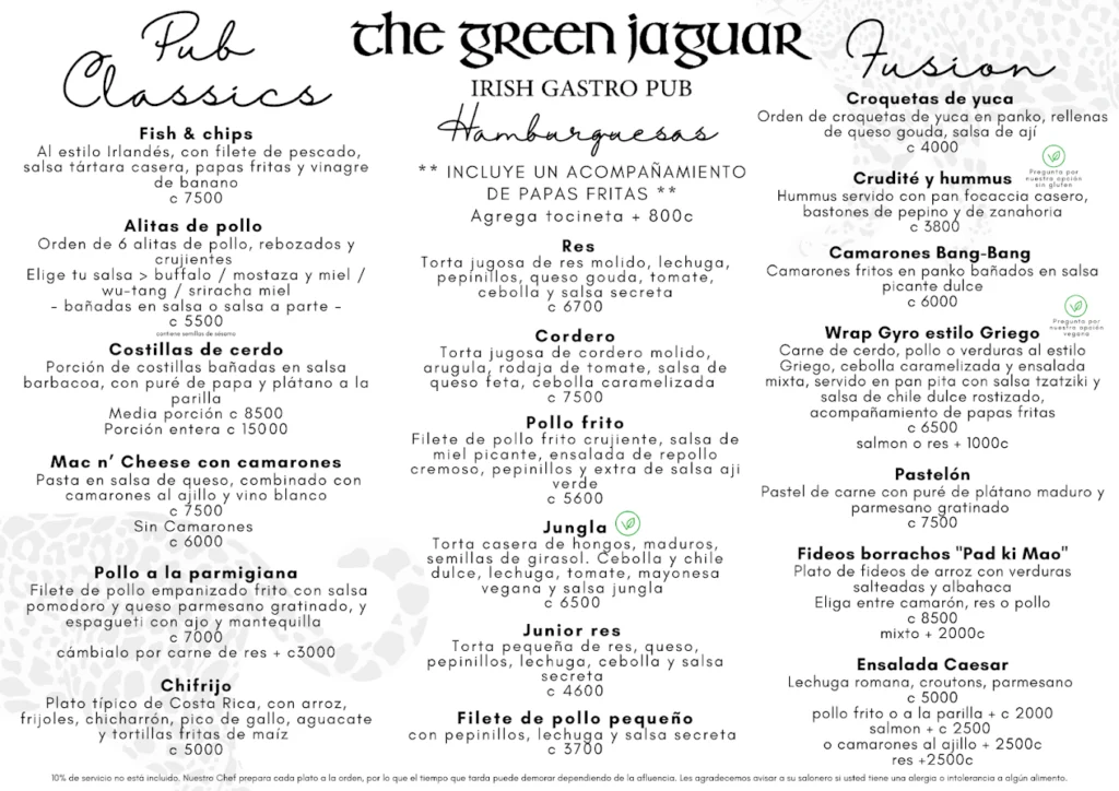 📍 Find Green Jaguar Irish Pub on the main street of Puerto Viejo de Talamanca. Walk‑in welcome; for band nights or large groups, DM on IG or FB.
