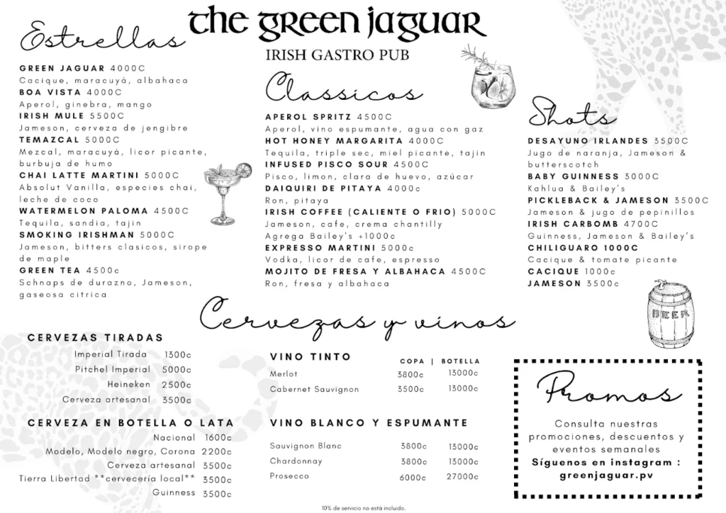 Green Jaguar Irish Pub is your go‑to spot for cold draft pints, hearty pub fare, live sports on big screens, and live music sessions—right in the heart of Puerto Viejo.